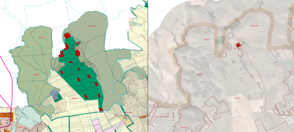 Navržená plocha čistého bydlení je vymezena na úkor „zeleného klínu a krajinného komplexu” a zasahuje do plochy „nejvýznamnější zeleně v městě Brně“. (Podle ÚPmB jsou „zelené klíny a komplexy” hodnotnou neurbanizovanou částí města, která je pouze limitně zastavitelná.